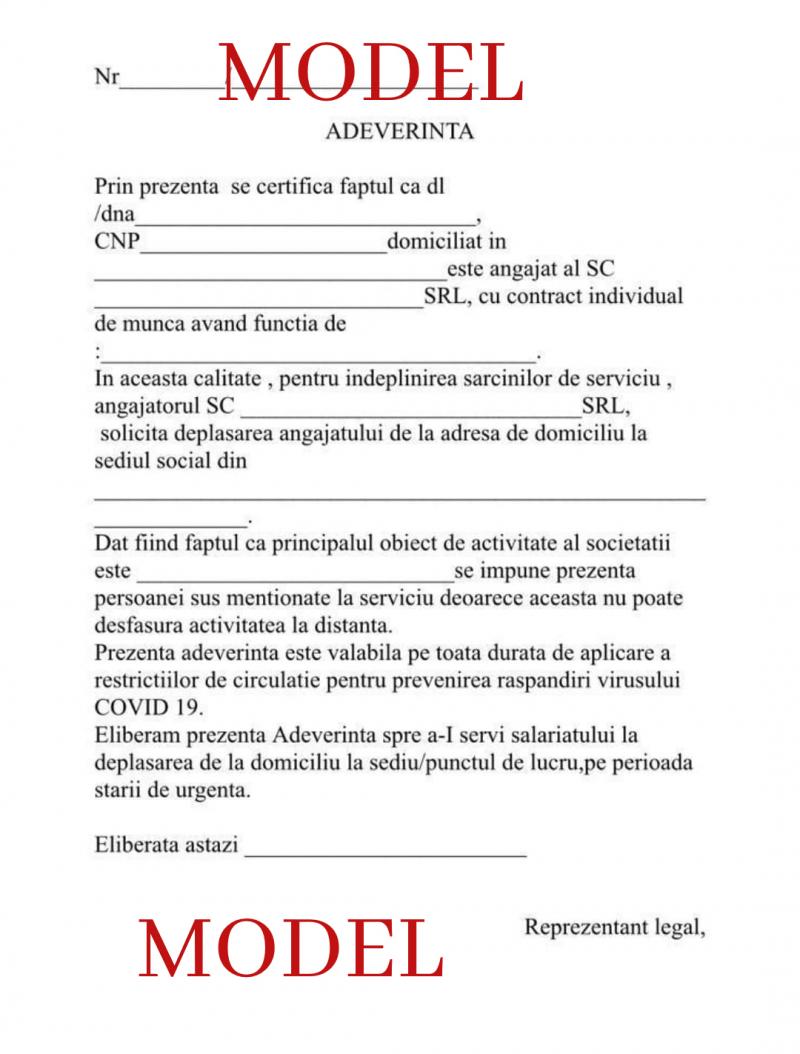 Aceasta trebuie eliberata in mod obligatoriu la incetarea cim indiferent daca salariatul a solicitat o sau nu. 34 din codul muncii prevede urmatoarele. Ministrul afacerilor interne marcel vela a emis ordonanță militară numărul 2 care impune restricții de circulație în românia în timp de coronavirus. Adeverința deplasare serviciu locul de munca.