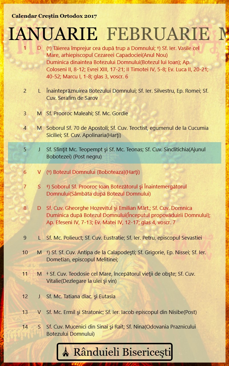 Calendar Creștin Ortodox 2017