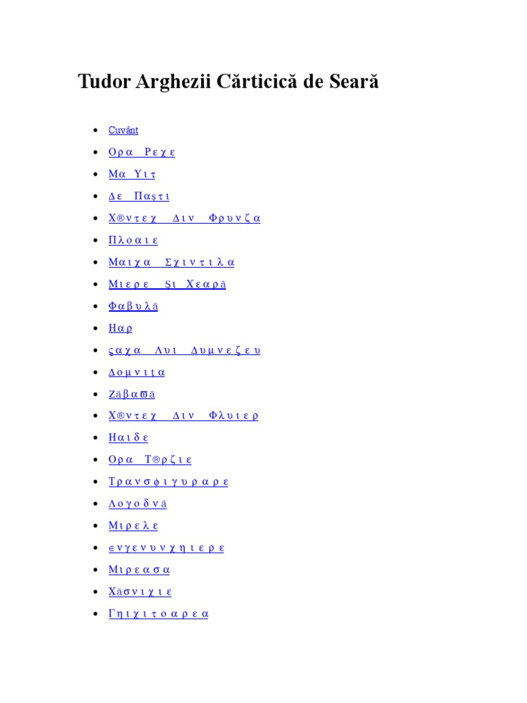Tudor arghezi pseudonimul lui ion nae theodorescu n 21 mai 1880 bucurești d. Puteti gasi foarte multe referate accesand categoriile din partea dreapta despre tudor arghezi carticica de seara uita te mai jos si o sa gasesti cele mai relevante rezultate pentru cautarea tudor arghezi carticica de seara. Am voit să umplu celule cu suflete de molecule. Informatii despre tudor arghezi carticica de seara versuri 1935 prima editie.