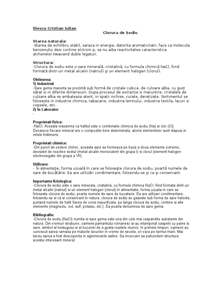 Sodiu clorura de sodiu clorura de sodiu cunoscuta si ca sare de bucatarie este un compus de care organismul uman are nevoie pentru indeplinirea unor functii zilnice variate. Ce este clorură de sodiu 0 9 şi pentru ce se utilizează 2. Conţinutul ambalajului şi alte informaţii 1. Perfuzia intra in sange rinichii filtreaza sangele si apoi elimina ce este de eliminat prin urina.
