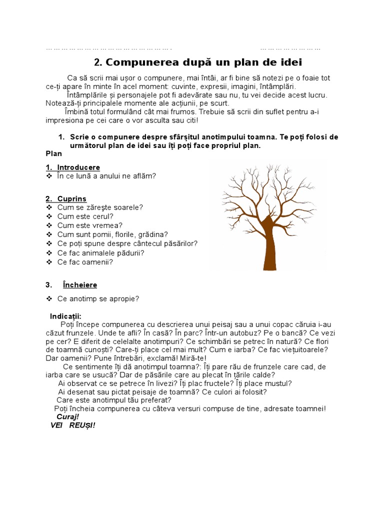 Compunere despre anotimpul toamna. Frunzele copacilor seamana cu un covor multicolor plin de nuante vesele si frumoase ce fac un peisaj artistic cromat si minunat de neuitat insa copacii au ramas singuri si goi fara nimeni care sa le aline durerea adanca fara. Compunere de toamna. Intr o zi superba de toamnă. Compunere despre anotimpul toamna un val de brumă argintie se așterne tăcută peste grădina ruginie.