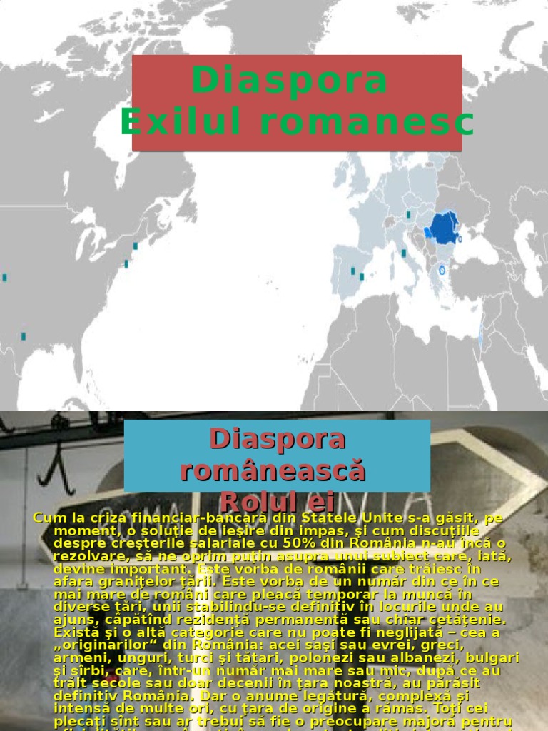 Exilul romanesc diaspora românească rolul ei cum la criza financiar bancară din statele unite s a găsit pe moment o soluţie de ieşire din impas şi cum discuţiile despre creşterile salariale cu 50 din românia n au încă o rezolvare să ne oprim puţin asupra unui subiect care iată devine important. Denumirea exipora este rezultatul contracţiei cuvintelor exil şi diaspora. Cultura națională despre exilul românesc diaspora la obiect mihaela albu. Studiul de caz diaspora și exilul românesc îți prezintă situația românilor din exil cu particularitățile greutățile dar și reușitele acestora.