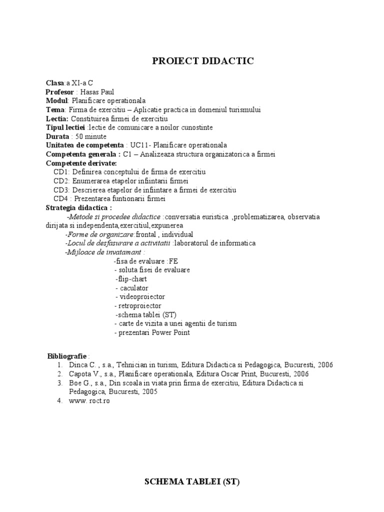 Elevii vor realiza lucrari practice. Structura planului de afaceri este diferita de la o firma la alta sau in functie de cerinta de intocmire. Proiect firma de exercitiu pentru liceu. Aceasta simuleaza etapele de infiintare a unei firme reale.