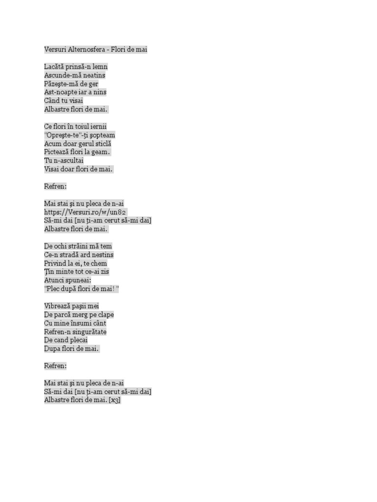 Versurile piesei flori de mai interpretata de horace. Albastre flori de mai. Mai stai şi nu pleca de n ai să mi dai nu ţi am. Alternosfera flori de mai versuri.