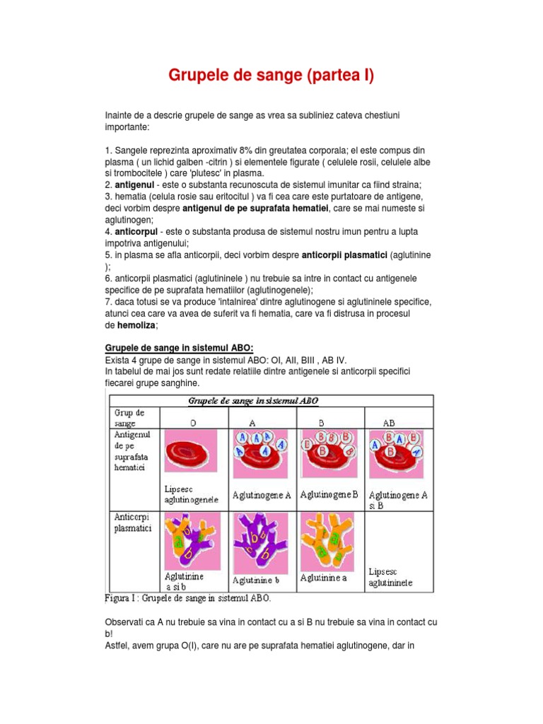 Fiecare persoana are un tip de grupa de sange o a b sau ab si un factor rh fie pozitiv fie negativ. Termenul de grupă sanguină sau grup sanguin este folosit atat pentru a caracteriza sângele unui individ în funcție de prezența sau absența unui antigen pe suprafața eritrocitelor acestuia. Cele cu rh pozitiv si cele cu rh negativ. Landsteiner a impartit grupele de sange in patru mari categorii.