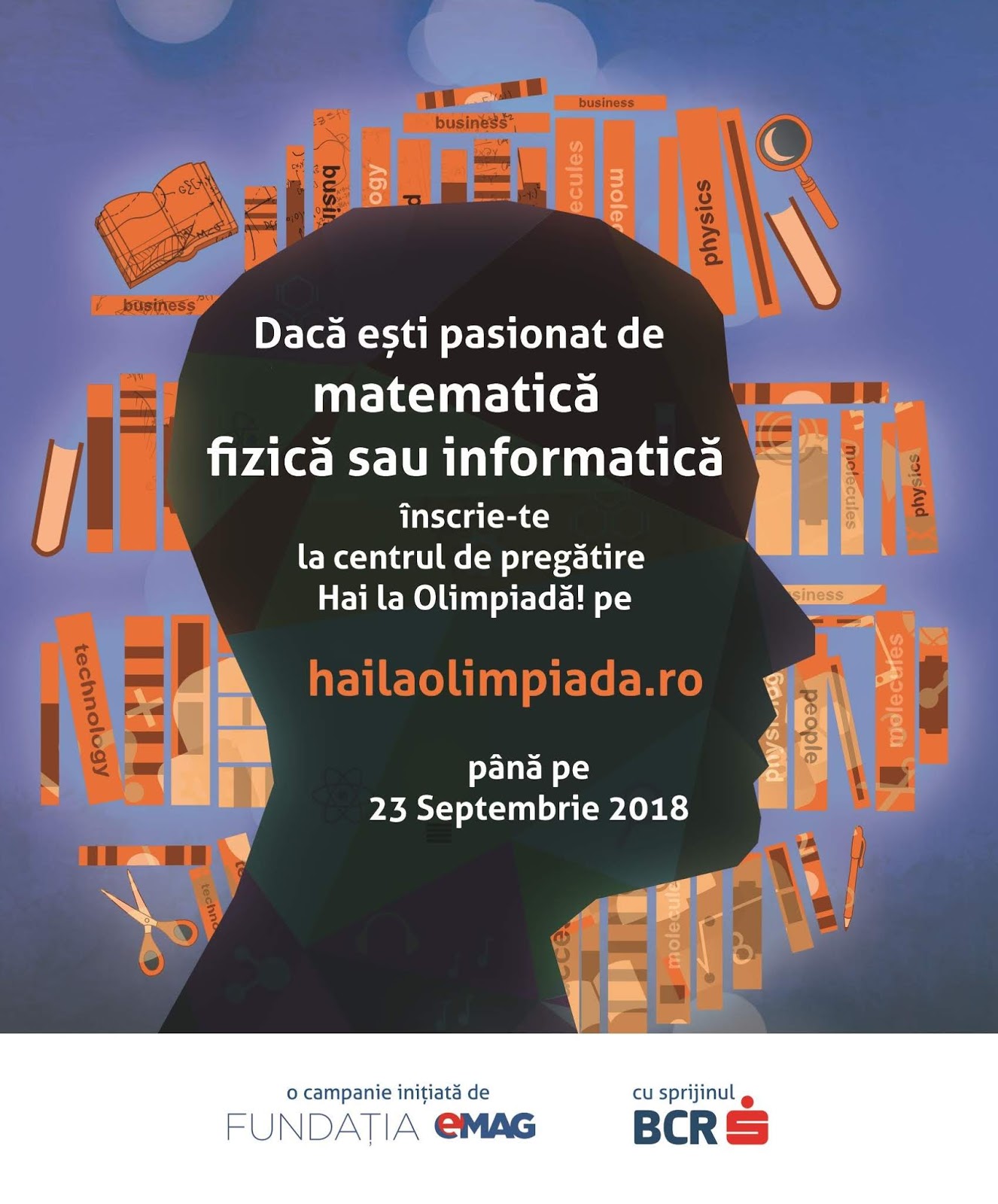 Clasa 9 junior. Vino în echipa hai la olimpiadă programul de pregătire pentru perfomanță hai la olimpiadă li se adresează exclusiv elevilor din sistemul public de învățământ pentru a înscrie un elev în program trebuie completat formularul de mai jos de către părintele sau reprezentantul legal al copilului după organizarea grupelor de lucru elevii admiși vor fi afișați în. Despre hai la olimpiadă și fundația emag. în curând vor începe cursurile la centrele gratuite de pregătire hai la olimpiadă.