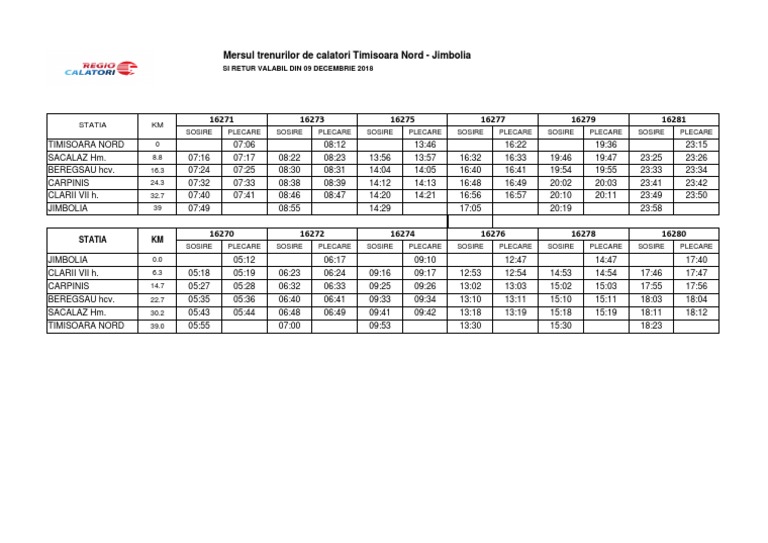 Trenul regio r 9585 cfr calatori plecare din timisoara nord la 07 04 am 51 distanta 39 km 45 88 km h. Calculator tableta sau mobil rezultatele afisate pentru mersul trenurilor timisoara nord jimbolia fiind aceleasi cu cele afisate de tabela de afisaj din gari. Tren r 9595 timisoara nord 23 20 sacalaz 23 33 beregsau 23 42 carpinis 23 53 clarii vii hc. Găsiți cel mai ieftin bilet de tren jimbolia spre timişoara.