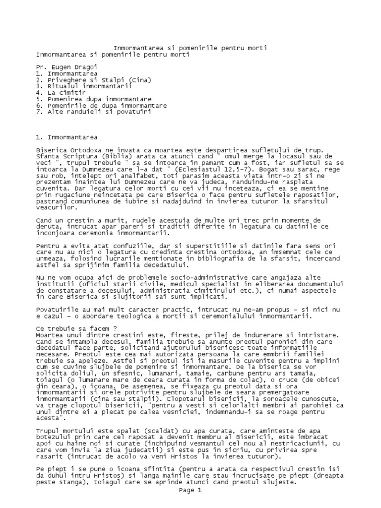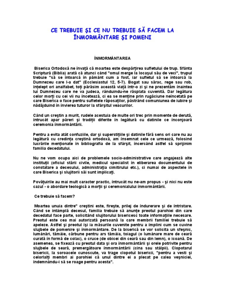 Model pomelnic pomenirea mortilor. Simion al tesalonicului despre sfîrşitul nostru cap. Ziua de 6 iunie 2020 este trecuta in calendarul ortodox ca zi de pomenire a mortilor. După cum spunea părintele cleopa dacă faci mamă pomelnic pentru ai matale la liturghie pune şi unul sau doi săraci sau o văduvă pe care nu are cine o pomeni şi a murit săraca. Sâmbăta ziua pogorârii domnului la iad când a avut loc ridicarea celor adormiți spre înviere este bine să fie cinstită prin aducerea aminte de cei trecuți în viața de veci ca prin rugăciunea noastră și prin pomenirea acestora să i ajutăm să dea răspuns bun la judecata lui dumnezeu și să se ridice cât mai aproape de tronul lui dumnezeu unde să înalțe și pentru noi.