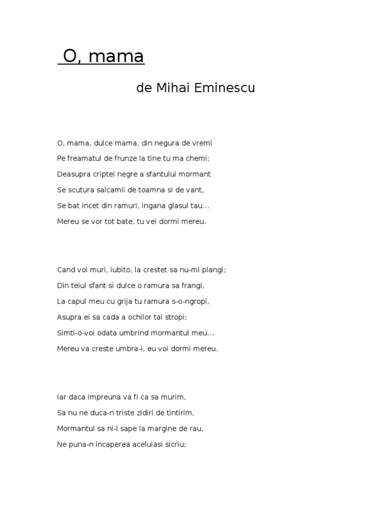 O mama de mihai eminescu. Educatie poezii poezii de 8 martie. O mama dulce mama din negura de vremi pe freamatul de frunze la tine tu ma chemi. Versuri o mamă de mihai eminescu. Poezii despre 8 martie.