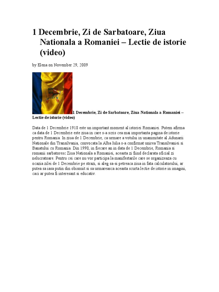 Sarbatoreste romaneste si fii patruns de spiritul romanesc national si patriot. Deşteaptă te române din somnul cel de moarte în care te adânciră barbarii de tirani. De 1 decembrie sarbatorim impreuna ziua nationala a romaniei. Poezia rugaciune pentru 1 decembrie.