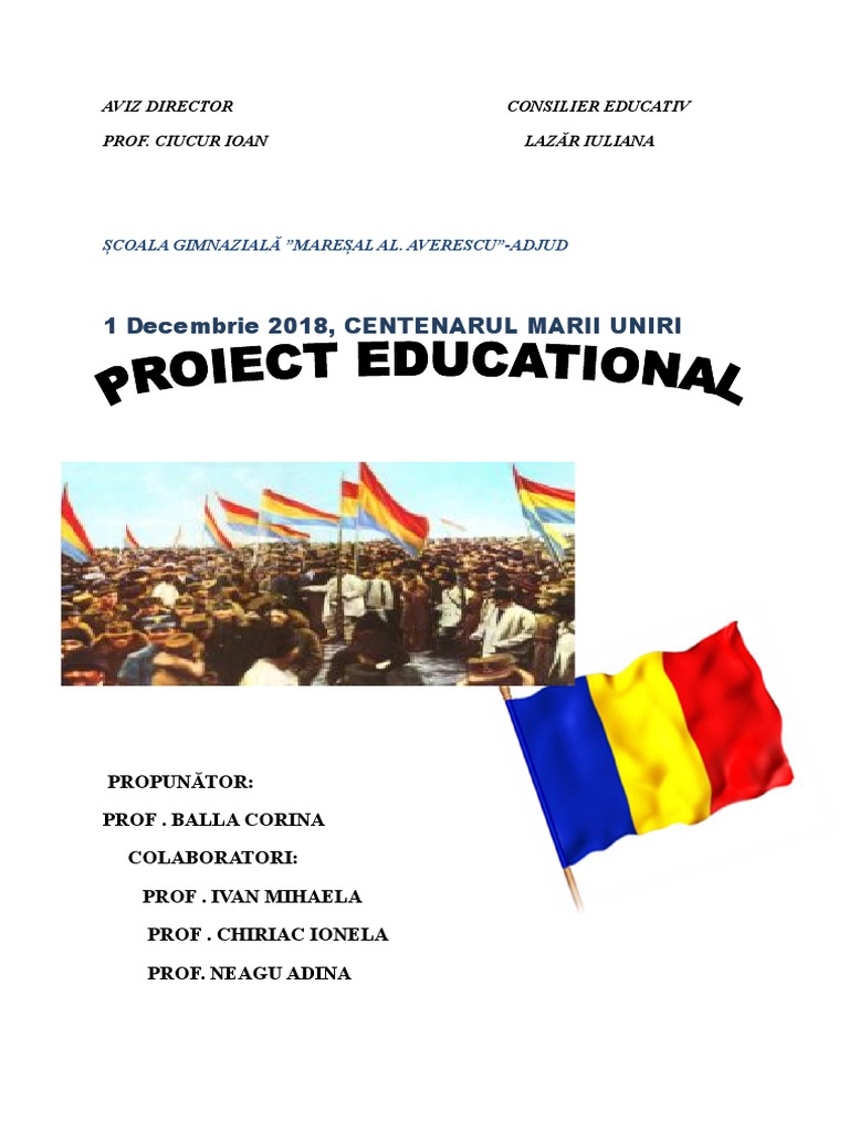 Proiect educational 1 decembrie ziua tuturor romanilor. Ileana neamtiu si în care au. La 1 decembrie 1918 a fost convocată la alba iulia adunarea naţională a românilor lucrările finalizându se cu hotărârea de unire necondiţionată a transilvaniei cu românia votată în unanimitate acest act a avut loc după ce la data de 27 martie 1918 respectiv 28 noiembrie 1918 organele reprezentative ale basarabiei şi bucovinei. 0 stele 0 review uri proiect educational prin care se doreste sa se marcheze ziua nationala a romaniei printr o serie de activitati desfasurate pe parcursul a doua sapt. Centenarul marii uniri ziua de 1 decembrie a fost marcata si în scoala noastra joi 29 noiembrie a c într un cadru festiv de sarbatoare printr o serie de manifestari culturale de suflet din inima catre inima reunite în proiectul educational 1 decembrie ziua nationala a româniei ziua tuturor românilor coordonat de prof.