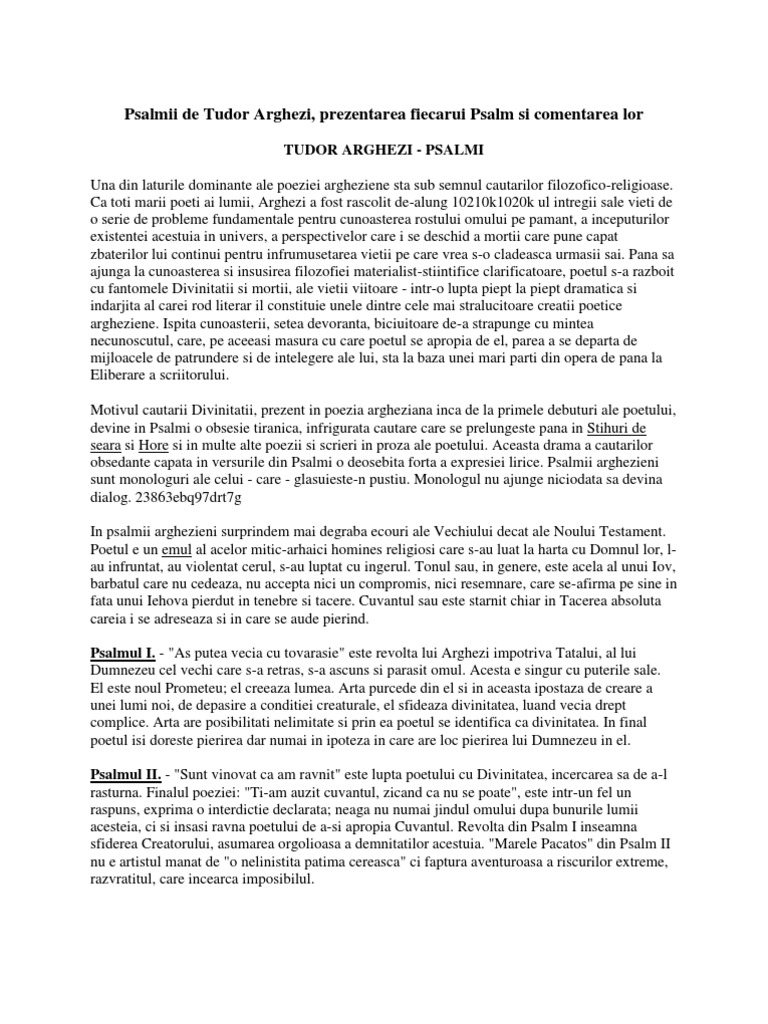 Psalm De Tudor Arghezi Comentariu