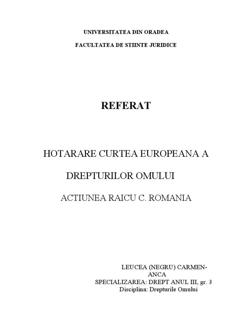Arhiva contine 1 fisier doc de 23 de pagini. Limbajul folosit este unul accesibl iar termenii noi. Referat drepturile omului are structura unui ebook toate informațiile oferite de noi în referat despre drepturile omului sunt bine structurate și organizate astfel încât să îți optimizezi procesul de învățare. Iti recomandam sa te uiti bine pe extras si pe imaginile oferite iar daca este ceea ce ti trebuie pentru documentarea ta il poti descarca.
