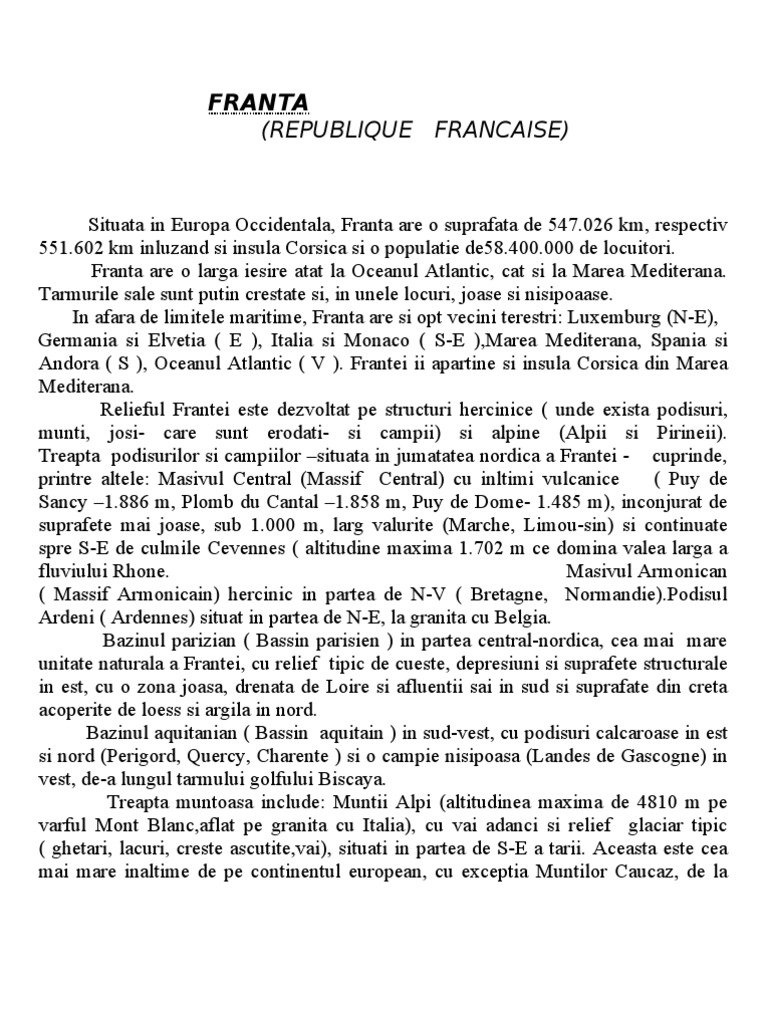 Referat franta monumente din franta referat despre franta franta republique francaise bazinul parizian bassin parisien in partea central nordica cea mai mare unitate naturala a frantei cu relief tipic de cueste depresiuni si suprafete structurale in est cu o zona joasa drenata de loire si afluentii sai in sud si suprafate din creta acoperite de loess si argila.