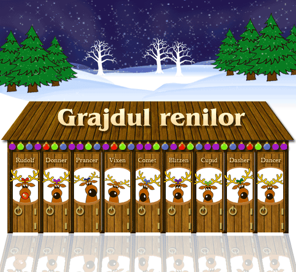 Cine nu a auzit de rudolph celebrul ren al lui moș crăciun. In poemul the night before christmas apar si numele celor opt reni fabulosi. Acestia se numesc dasher dancer prancer vixen comet cupid donder si blitzen. Citește cele mai noi informații despre moș crăciun.
