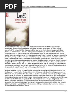 Pe internet sunt diponibile la download ilegal in format digital pdf mobi epub o parte dintre cartile care despre care am scris pe acest site. Dan lungu pdf. Dan lungu sint o baba comunista. Filmul are la bază romanul scris de către dan lungu în anul 2007.