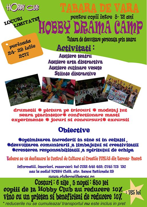 Tabara de vara 2017. Formularul de inscriere a fost inchis deoarece s au ocupat toate locurile. Circuitul inchis varietatea facilitatilor de care dispunem pentru odihna activa sau pentru relaxare mancarea delicioasa si grija gazdelor de a va oferi un timp de calitate in deplina siguranta si intimitate fac din complexul terra mythica visul oricarui organizator de excursii. In perioada 20 25 august 2017 am fost in ultima tabara de echitatie din vacanta de vara. Tabara de pictura hobby art editia de vara 2017 ii miclauseni.
