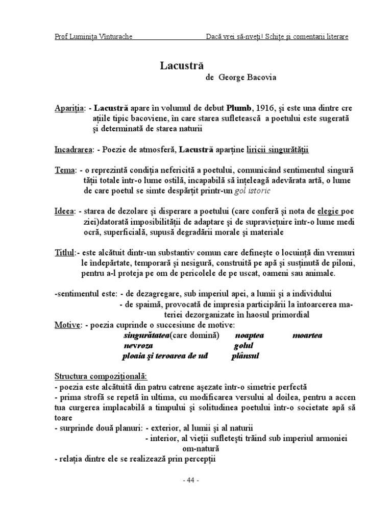 Tema si viziunea despre lume lacustra. Tema principala a romanului este problematica pamantului intr o perioada istorica determinata coroborata cu viata sociala a ardealului de la inceputul secolului al xx lea. Tema și viziunea despre lume reprezintă una dintre cele mai populare cerințe regăsite în cadrul subiectului al iii lea al examenului de bacalaureat la limba și literatura română așadar dacă ești în clasa a xii a și ai început să te pregătești pentru bac te sfătuim să citești și să încerci să înțelegi în mod logic modelele rezolvate de eseuri despre tema și. Ca teme secundare intalnim tema familiei si tema iubirii. în elaborarea eseului vei avea în vedere următoarele repere.