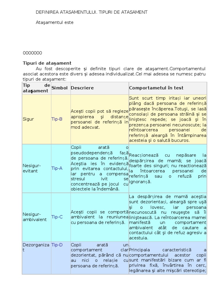 Tipuri de atașament ca urmare a experimentelor efectuate în 1973 bowlby revine cu trei postulate care justifică universalitatea sentimentelor de atasament. Toate relatiile de apropiere si iubire din copilarie definesc comportamentul viitorului adult. Sentimentele de atasament se formeaza in perioada 0 3 ani si au un grad mare de impact asupra intregii dezvoltari emotionale a individului. Securizant dezorganizat evitant ambivalent.