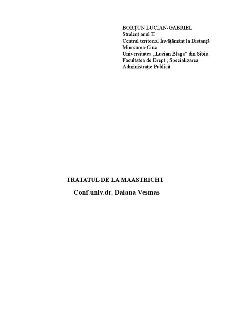 Tratatul De La Maastricht Principii