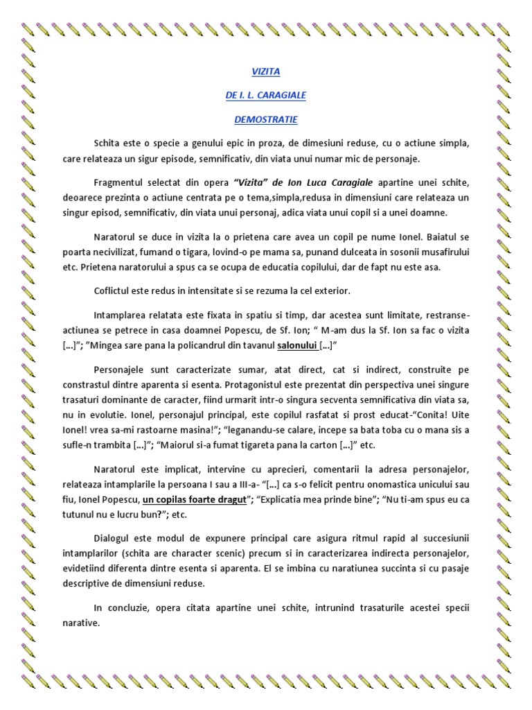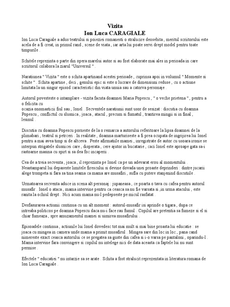 N am voit sa merg cu mana goala si i am dus baietelului o minge foarte mare de cauciuc si foarte elastica. Vizita de ion luca caragiale povestire m am dus la sf. Ion sa fac o vizita doamnei maria popescu o veche prietena ca s o felicit pentru onomastica unicului sau fiu ionel popescu un copilas foarte dragut de vreo opt anisori. Vizita de ion luca caragiale.
