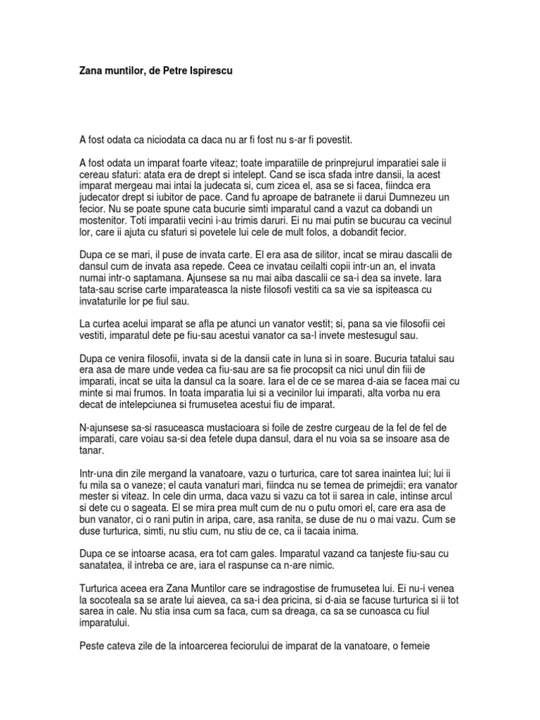 Zana muntilor de petre ispirescu. 3 rezumate scurte ale povestii zâna munţilor scrisă de scriitorul român petre ispirescu. Toate împărăţiile de prinprejurul împărăţiei sale îi cerea sfaturi. Zâna munților de petre ispirescu povestea in. Zana muntilor autor.